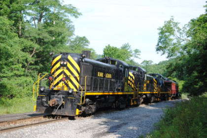 The train climbed the grade out of Scranton running through Nay Aug Park before proceeding through Nay Aug Tunnel. East of the tunnel, we detrained for the first photo runby of the day.