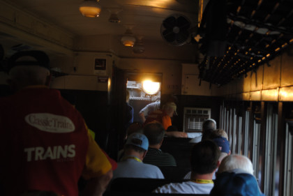 The engine crew left the rear headlight on, blinding us until we told the conductor, who had it turned off.