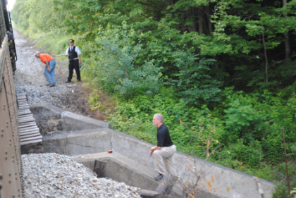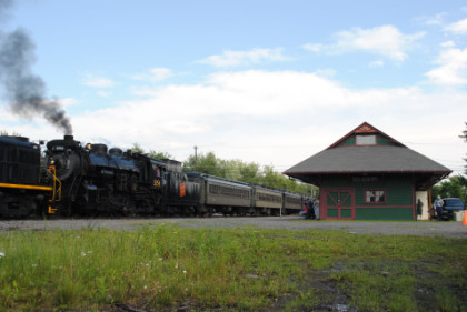 The train climbed away from the Delaware River to a lunch break at Stroudsburg.