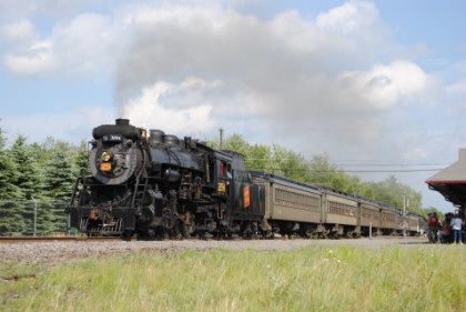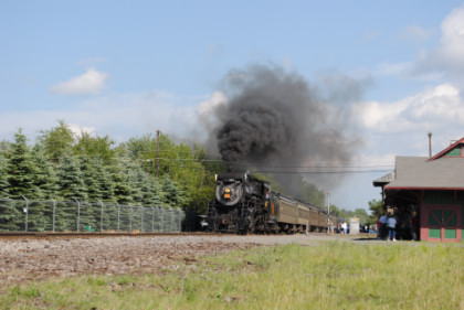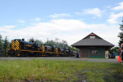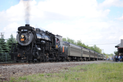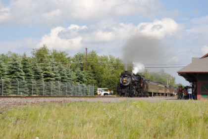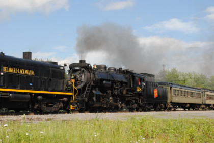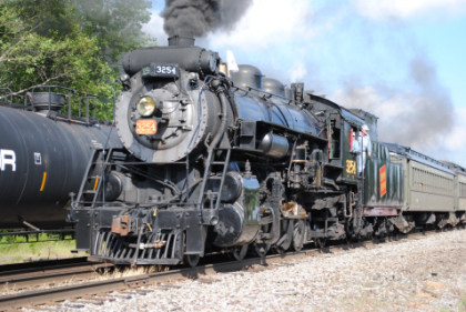 Canadian National 2-8-2 3254 finally arrived, then the RS-3s ran around the train and were put ahead of the steam engine as far as Tobyhanna.
