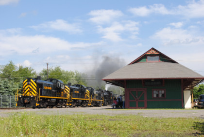 The Delaware-Lackawanna RS-3s then moved forward and stopped right in front of us.