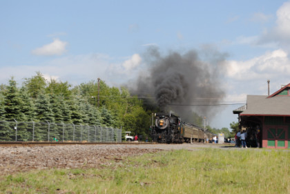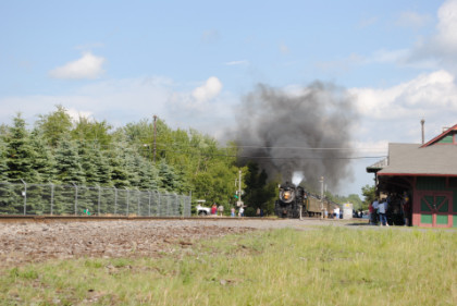 Since the tender of Canadian National 3254 had a water leak, we had to make another water stop and this is train returning from watering.