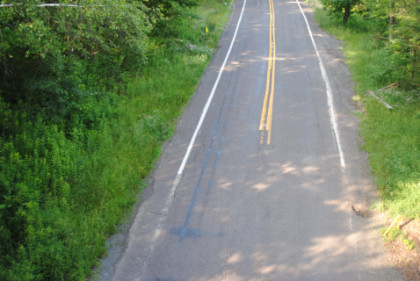 The skid marks show just how fast that truck was travelling before it hit the bridge. Once the whole train was over, we picked up speed and returned to Scranton. It had been another interesting NRHS trip and I went up to my room to pick up my suitcase of dirty clothes then walked over to the Hilton and used the laundry room on the third floor. I returned to the Radisson for an early good night's sleep.