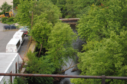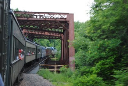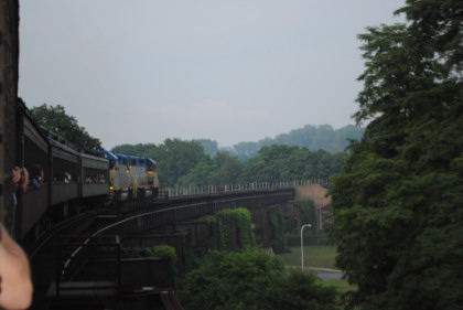Crossing the Susquehanna River for the final time at Wilkes Barre. We returned to the Steamtown wye before reversing to the boarding area, arriving there at 9:12 PM, after which I returned to my room for the night.