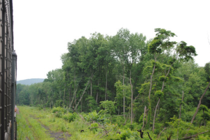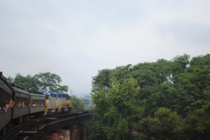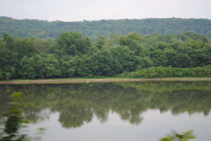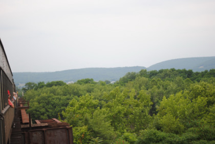 Two more views of the Susquehanna River. We stopped and waited for a Norfolk Southern train to pass before the power ran around the train and pushed us back as far as we were allowed to go.