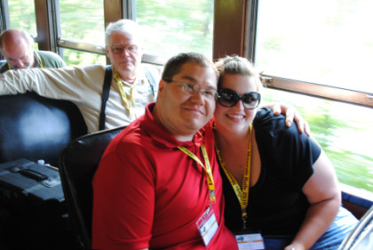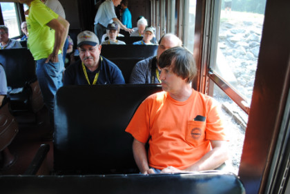 I arose at the Radisson Lackawanna Hotel in Scranton and went down to see what was available for a light breakfast, buying a small cinnamon roll and then returning to the room to work on stories for a few minutes. I then packed and went down to the boarding area behind the hotel for the trip to Sudbury. Here I waited with many of my NRHS friends, whom I only see once a year. Bart Jennings was here so I knew when we boarded the train to stay close to him. The train arrived late and only two doors were used for loading. I followed Bart to Central of New Jersey coach 550 and sat in front of him for our trip.