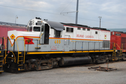 Delaware-Lackawanna C-420 405, ex. Indiana High Rail Corporation 310, exx. Delaware and Hudson 405, nee Lehigh Valley 405 built by American Locomotive Company in 1964.