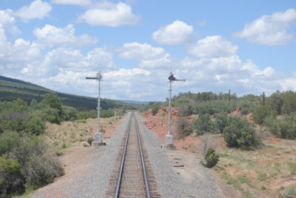 Semaphore signals at Chappelle. We would now enter the major washout zone which we ran through at restricted speed.