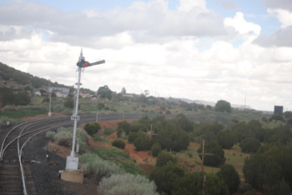 Semaphore signals at Watrous. A few miles to the west, we slowed for the first washout area.