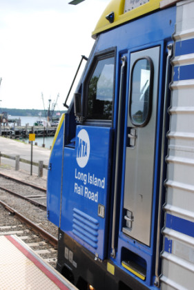 Our train ready to return to Ronkonkomo. I walked two blocks to Subway and brought back a roast beef sandwich and a Coca-Cola to a bench in the shade at the waterfront park and watched the ferries coming and going to Shelter Island.
