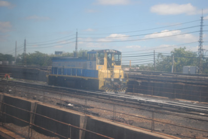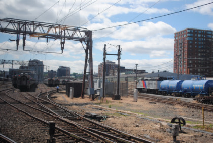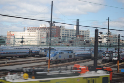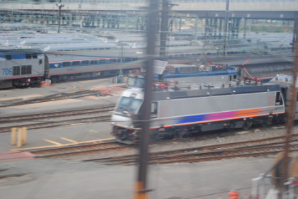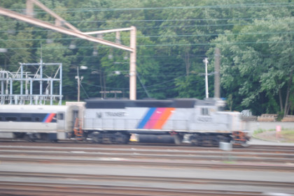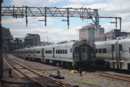 New Jersey Transit cars awaiting their afternoon assignments. The train went through the Bergen Tunnel and out across the New Jersey meadowlands.