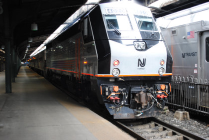 The front of the train with New Jersey Transit F40PH2 4113 built by Electro-Motive Division in 1981.