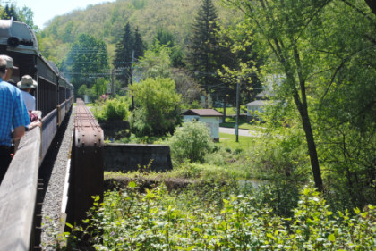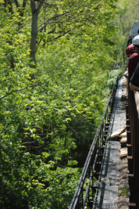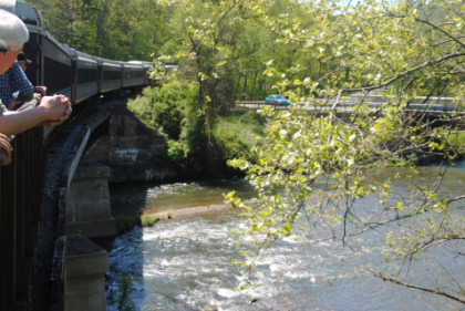 Crossing Oil Creek and note the fly fisherman. We detrained for our next photo runby at the south end of the bridge.