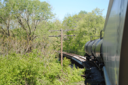 The freight cars coming off the Oil Creek bridge.