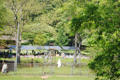 Bus loads of children at the Drake Well Museum. From here we entered Oil Creek State Park.
