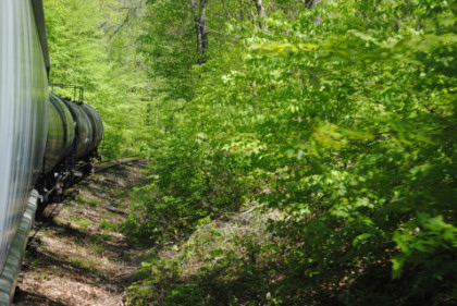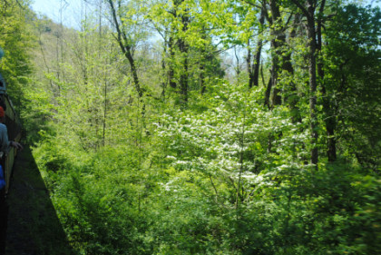 Our train running through the forest along Oil Creek.