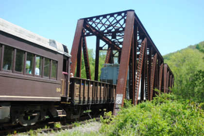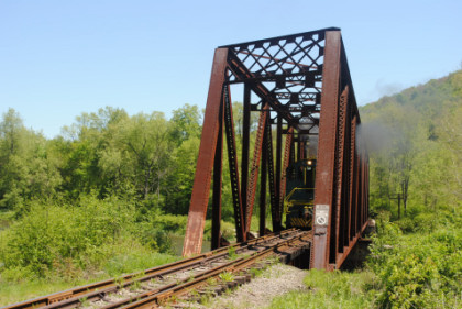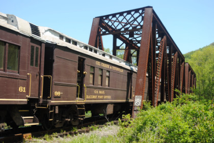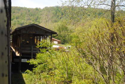 The train crossed Oil Creek as made our way back to Titusville. It had been a great trip aboard the Oil Creek & Titusville Railroad and I walked back to the B&O caboose and worked on the stories from the last two days then Randy and I ate at the Blue Canoe and I finished the stories during the evening.