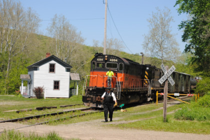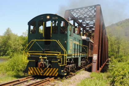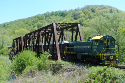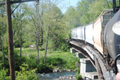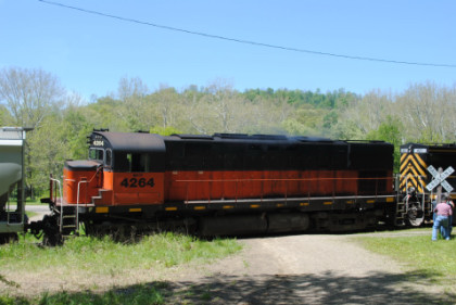 Oil Creek at the Rynd Farm. We reboarded but it was then announced we would be waiting for the Western New York & Pennsylvania Railroad to deliver a "hot car" for Titusville and we could photograph the interchange.