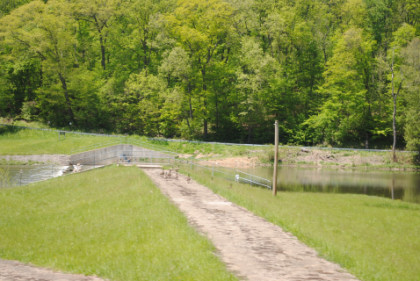The Ice Control dam built in 1989 by the Corps of Engineers to reduce flooding in Oil City. Historically, ice breaks on the Oil Creek before it does on the Allegheny River. The results of this is the creation of ice jams and flooding. Therefore, the dam was built to stop the movement of the spring ice flows.