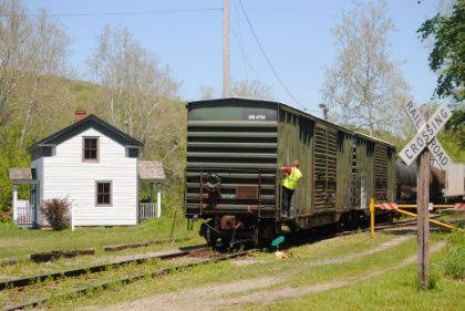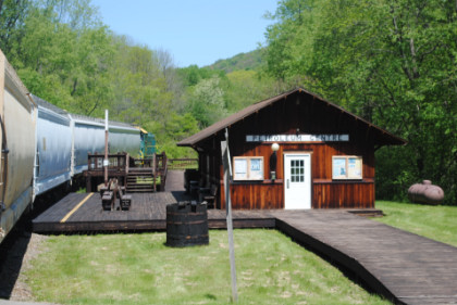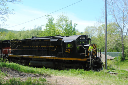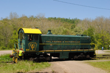 The Western New York & Pennsylvania Railroad arrived with their cars for interchange with the Oil Creek & Titusville Railroad.