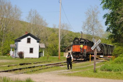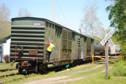 Our engine ran around the train to get the freight cars in a position to be interchanged with the Western New York & Pennsylvania Railroad.