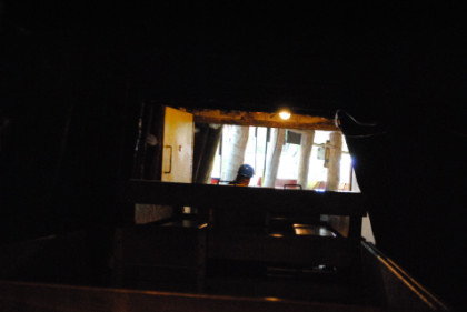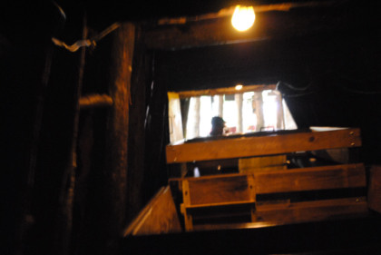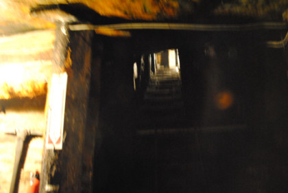 Looking up a coal chute.