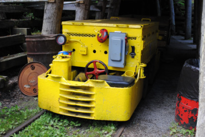 The mine engine which pushes the train into the mine.