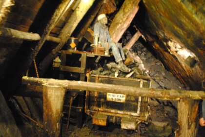 Electricity sparked the Anthracite Industry of the mine and huge motors pumped the water away. A trip into the mine today you will ride 1,800 feet into Mahonoy Mountain darkness on a mine motor to see the will glistening seams of coal like the miners saw back in their day. A mine guide will give you a complete tour of the Pioneer Coal Mine. Outside there is a steam train ride pulled by a 0-4-0 steam lokie that is only 23 feet long, 8 feet wide with 33 inch drivers. This type of engine was used in the strip mining that occurred in this area of Pennsylvania.