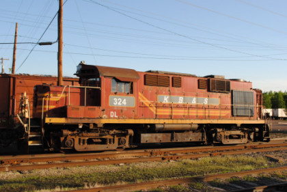 Delaware-Lackawanna RS-11 324, ex. Kankakee, Beaverville and Southern 324, exx. Minnesota Central 1100, exxx. Mississippi Central 1100, exxxx. California Western 63, exxxxx. Southern Pacific 2935, nee Southern Pacific 5870 built by America Locomotive Company in 1959.