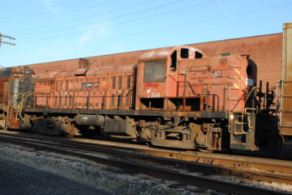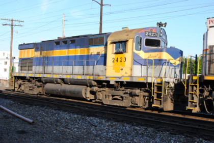 Delaware-Lackawanna C425 2423, ex. Delaware-Lackawanna 6101, exx. Port Colborne Harbor 6101, exxx. Morrison-Knudsen 6101, exxxx. New York and Lake Erie 6101, exxxxxx. Conrail 5062, exxxxxx. Penn Central 2423, nee Pennsylvania Railroad 2423 built by American Locomotive Company in 1965.