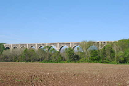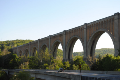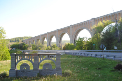 The DL&W built the viaduct as part of its 39.6-mile Nicholson Cutoff, which replaced a winding and hilly section of the route between Scranton, Pennsylvania, and Binghamton, New York, saving 3.6 miles, 21 minutes of passenger train time and one hour of freight train time. The bridge was designed by the DL&W's Abraham Burton Cohen. In 1975, the American Society of Civil Engineers designated the bridge as a National Historic Civil Engineering Landmark. ASCE noted that at the time of its construction from 1912 to 1915, it was the largest reinforced concrete railroad bridge ever built. The bridge was also listed on the National Register of Historic Places on May 3, 1977. In 1990, the National Railway Historical Society placed a historical plaque on the structure noting its size as the world's largest concrete bridge, completing the Summit cut-off project for the Delaware, Lackawanna and Western Railroad.