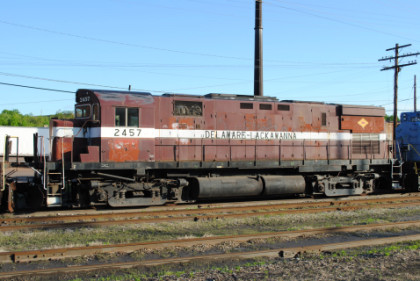 Delaware-Lackawanna C425 2457, ex. Wabash and Ohio 325, exx. Maumee and Western Railroad 325, exxx. Indiana Hi-Rail 4252, exxxx. Burlington Northern 4252, nee Spokane, Portland and Seattle 312 built American Locomotive Company in 1965.