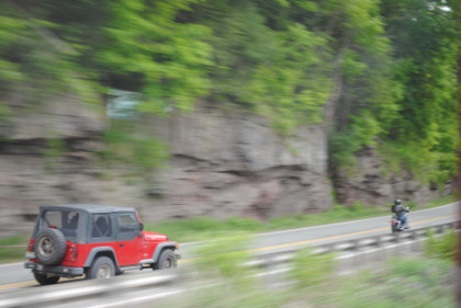 A jeep and motorcyclist provided us with some good laughs as they chased our train. We passed the waterfall called Falls which could be seen through the trees.
