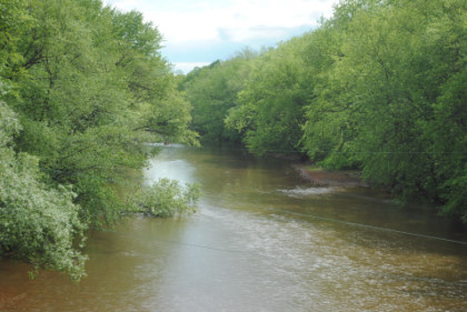 The first crossing of the Lehigh River. The rafters were out in force today.
