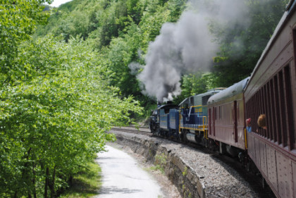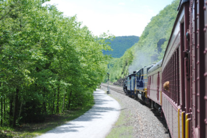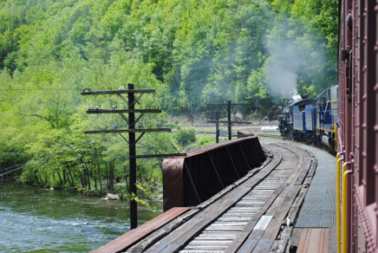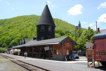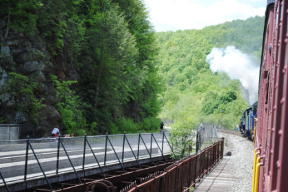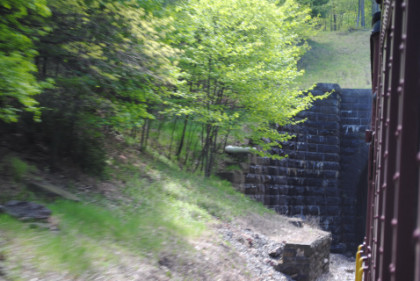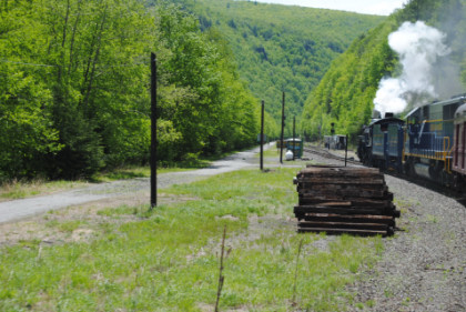 At Independence, the Norfolk Southern line from Hazleton joined the Lehigh Gorge. The gorge used to have three different railroads running through it, namely Central Railroad of New Jersey, the Lehigh Valley Railroad and the Reading Railroad.
