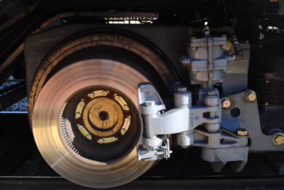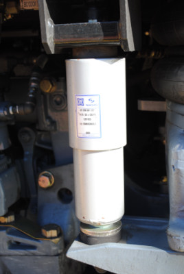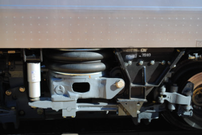 Shock absorber on the truck of Metrolink Rotem coach 212.