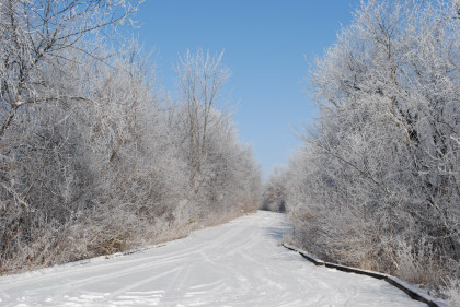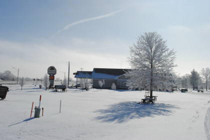 The frost on the tree outside the Depot Inn & Suites, after which I drove out to the Chris Guenzler Million Mile Lookout Point.