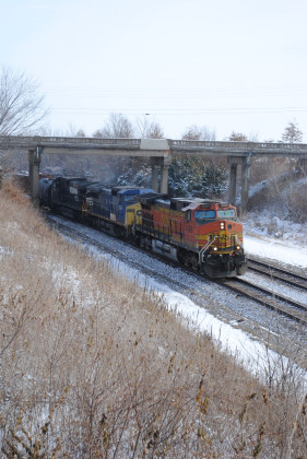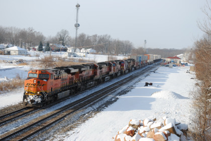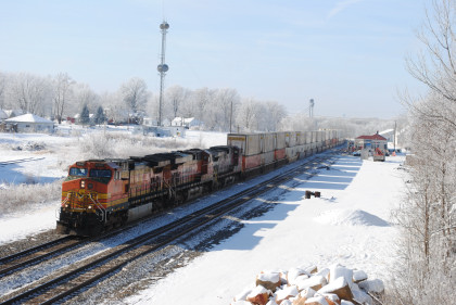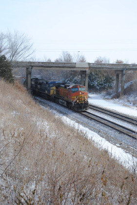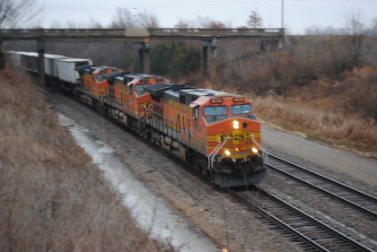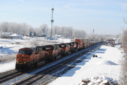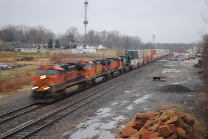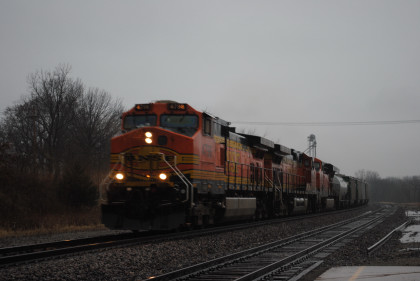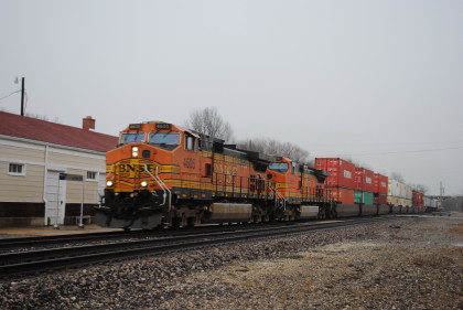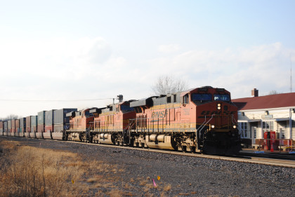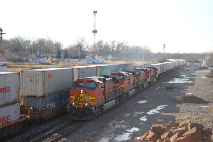 The first train of 2011 was an eastbound BNSF at 12:03 AM. A westbound BNSF train passed three minutes later and with that, we returned to the Depot Inn & Suites on a 13 degree night and I called it a night.