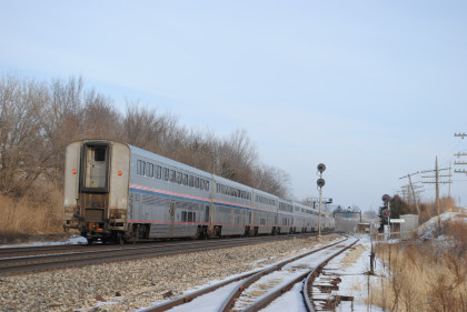 12/27/2010 Efren awoke me half an hour from Kansas City and I went to the dining car and was seated with a beautiful woman who had just moved to Claremont, California and was headed to Kansas City. I had French Toast and bacon and finished before our early arrival there. I detrained to test the morning temperatures so could be prepared for La Plata later this morning. The train departed on time as I watched my Poison DVD "Poison Live Raw & Uncut" which took me as far as Carrollton, after which I listened to "Mylie Cyrus I Can't Be Tamed" as I caught up on the story. In case you noticed the lack of pictures, I was not really in the mood to take any and as I always say "Been here already and done it!" The CD finished just past Ethel and I relaxed the rest of the way to La Plata, arriving there a few minutes early.