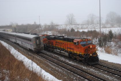 After the show, BNSF 623 East passed us and we then returned to the hotel for the rest of the afternoon. I went to the Red Rooster for a steak then watched the NHL Winter Classic as the Washinghton Capitols defeated the Pittsburgh Penguins 3-1. I went to sleep with an early wake up call for a day of fun with trains.