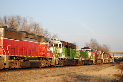 This was a very interesting train with BNSF 719, 721, 200, 1556 and Arizona and California GP39-2 3901. After that I drove to the KFC in Kirksville for dinner and relaxed the evening away before calling it a night.