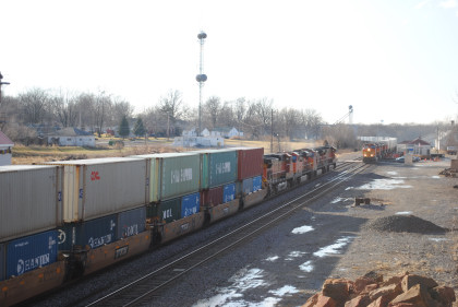 A few minutes later, a westbound BNSF piggyback train went through La Plata. I now waited for the Southwest Chief to arrive.