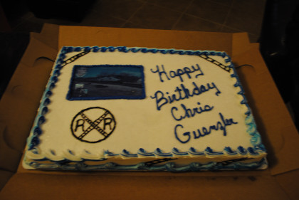 BNSF 4008 East sped through on its way to Chicago. BNSF 4018 then crossed over at the La Plata crossovers and I returned to the Depot Inn & Suites, meeting Nathan in the lobby. We talked with hotel assistant manager Sally before going to Room P and continuing our conversation then at 5:30 PM, we met Bob Cox, who drove us to Colton's Steakhouse in Kirksville for dinner. After waiting thirty minutes to get in, I had an excellent top sirloin for my birthday dinner and back at the hotel, a birthday cake awaited.