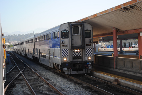 Pacific Surfliner 763 next arrived and at 9:05 AM, it departed for Santa Barbara. We waited for a green signal to depart for San Bernardino.