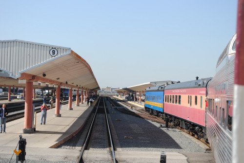 Santa Fe 3751 passd the Coast Starlight as it reversed into the station.