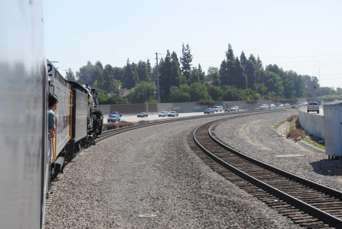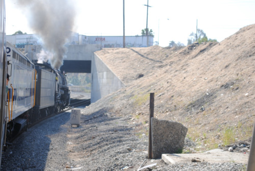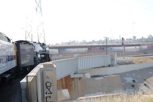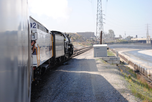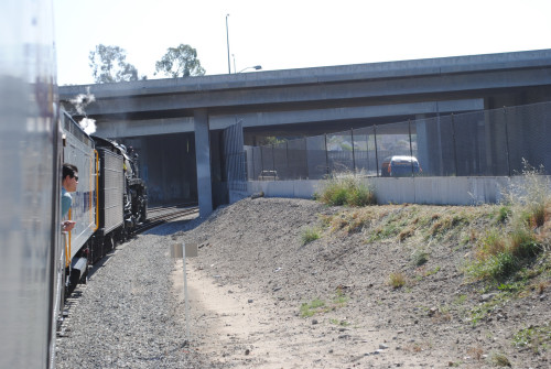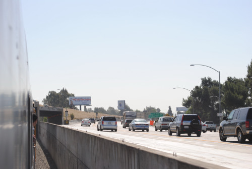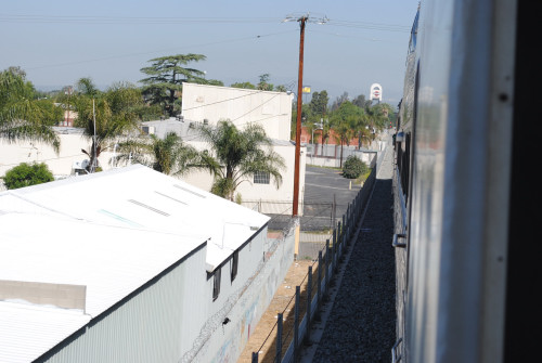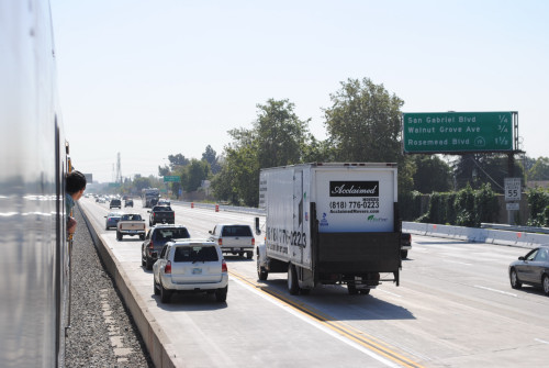 Two views as Santa Fe 3751 took us down the San Bernardino Freeway.
