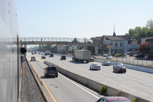 Next we went under Marengo Street and a few minutes later, passed through the Cal State Los Angeles Metrolink station before we entered the middle of the San Bernardino Freeway.