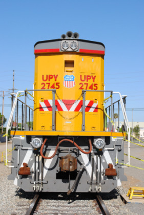 Union Pacific Yard 3GS21B 2745, one of the new Genset locomotives. From here we drove to La Habra for two railroad stations.