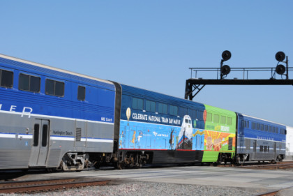 The Chase and RideWhen I heard Santa Fe 3751 was returning to San Diego, I decided to get a dome ticket for the first northbound daylight. Bob and Elizabeth decided to join me so plans were made where I would pick them up at the airport and take them to their hotel. We would chase the steam train to San Diego, stay the night, ride Santa Fe 3751 northbound and Chris Parker would chase both ways. I rented a Ford Focus and picked it up Friday afternoon then picked Bob and Elizabeth up at the Orange County Airport and brought them to my house. From there, we went to Orange to see a couple of trains then had dinner at The Habit. After that I checked them into the Red Roof Inn for the night and I returned home.