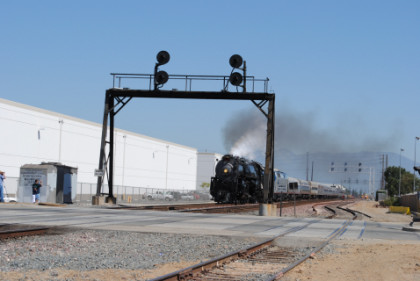 Santa Fe 4-8-4 3751 passed under the old Santa Fe signal bridge at Lakeland Street.